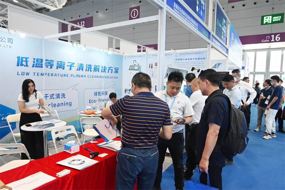 本次展會(huì),針對(duì)半導(dǎo)體封裝行業(yè)我司主要帶來(lái)了我們最新的等離子清洗設(shè)備,及等離子去膠機(jī)。封裝工藝直接影響引線框架芯片產(chǎn)品的成品率,而在整個(gè)封裝工藝環(huán)節(jié)中出現(xiàn)問(wèn)題的最大來(lái)源就是芯片與引線框架上的顆粒污染物、氧化物及環(huán)氧樹(shù)脂等污染物。針對(duì)這些不同污染物出現(xiàn)環(huán)節(jié)的不同在不同的工序前可增加不同的等離子清洗工藝,其應(yīng)用一般分布在點(diǎn)膠前、引線鍵合前、塑封前等。